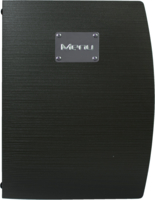 * Kunststof menu- of wijnkaarten van hoogwaardige kwaliteit. * Voorzijde voorzien van een zilverkleurige metalen plaat met een ingestantste tekst. * Kaart voorzien van 1 transparant inlegvel voor presentatie van 4 A4 vellen. 1 blister x 1 stuk
