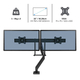 * Maximaliseer de bureauruimte en verhoog uw monitoren om de belasting van ogen, nek en schouders te verminderen. * Het ontwerp van de dwarsbalk zorgt voor een naadloze uitlijning van de monitor, zonder dat deze te ver op het bureau staat. * Ideaal voor zelfs de kleinste werkplekken.Eppa™ biedt moeiteloze gasveer-vingeraanraking, perfect voor hot desking en samenwerken. * Met de handgreep op de dwarsbalk kunnen de monitoren gemakkelijk worden verplaatst. * 360° draaibare arm met optionele 180° lock-out functie om botsingen met muren of bureauschermen te voorkomen. * Minimalistisch en stijlvol ontwerp. * Met ingebouwd kabelbeheer om u vrij te houden van wirwar. * Inclusief bureauklem en tulebevestiging voor veilige en gemakkelijke bevestigingsopties. * Verkrijgbaar in zwart, wit of zilver. * Getest door FIRA International Ltd om te voldoen aan de ergonomische eisen van de Europese gezondheids- en veiligheidswetgeving: EN ISO 9241-5.
