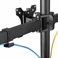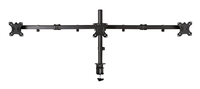* Met deze monitorarm bevestigt u drie flatscreen monitoren van maximaal 27" aan het bureau via een bureauklem of bladdoorvoer. * Door gebruik te maken van een monitorarm profiteert u optimaal van de mogelijkheden van uw monitor en bespaart u ruimte op uw bureau. * De monitorarm is eenvoudig in hoogte en diepte te verstellen. * Tevens kunt u de schermen kantelen, zwenken en roteren. * Hierdoor creëert u de ideale ergonomische werkhouding. * Dit verkleint de kans op nek- en rugklachten. * Kabels zijn netjes weg te werken aan de onderzijde van de horizontale armen. * De arm heeft 3 draaipunten en is geschikt voor drie schermen van maximaal 27". * Het draagvermogen van de arm is 7 kg per scherm. * Dit product is geschikt voor schermen met een VESA gatenpatroon van 75x75 mm of 100x100 mm. 1 stuk