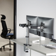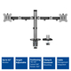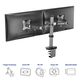 * Ergonomische bureausteun geschikt voor 2 monitoren tot 32” en 9kg. * In hoogte verstelbaar. * Arm met 3 knikpunten voor de beste kijkafstand. * VESA 75x75 en 100x100; beeldschermmontagesysteem. * Geïntegreerd kabelmanagement. * Flexibele schermaanpassingen: kantelen, roteren, zwenken. * Bureauklem en bureaudoorvoersysteem voor het bevestigen op en door de tafel (max. tafeldikte 88mm). * Creëer een ergonomische en ruimtebesparende werkplek door gebruik te maken van de AC8336 Monitor Bureausteun. & Bevestig de monitorsteun op of door een bureau (max. tafeldikte 88mm). * Plaats eenvoudig twee schermen tot 32” op de AC8336 met behulp van het beeldschermmontagesysteem. De monitorbeugel heeft drie knikpunten voor het instellen van de ideale kijkafstand. * De monitoren kun je aanpassen door deze te kantelen, te roteren of te zwenken. De kabels zijn netjes weg te werken met het handige kabelmanagementsysteem. * Creëer een ergonomische werkplek, de AC8336 Monitor Bureausteun is in hoogte verstelbaar en heeft drie knikpunten. * Door de schermen te kantelen, roteren of te zwenken creëer je de meest ergonomische werkhouding waardoor je de kans op nek-, rug- en schouderklachten verkleint. Kabels zijn netjes weg te werken dankzij het handige kabelmanagementsysteem. * Handig beeldschermmontagesysteem, dankzij het handige beeldschermmontagesysteem bevestig je eenvoudig zelf de monitoren op de bureausteun. De steun heeft VESA 75x75 en 100x100. * De AC8336 wordt compleet geleverd met alle montagemiddelen voor zowel klem- alsook doorvoermontage. De bureausteun is geschikt voor tafels met een maximale dikte van 88mm. 1 stuk