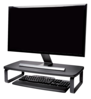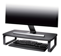 Het extra brede universele platform is geschikt voor alle schermen met een afmeting tot 27" en een gewicht van maximaal 18 kilo. * De ruimte onder de standaard is groot genoeg voor een volledig toetsenbord.