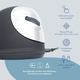 * De R-Go HE Break Muis is een ergonomische verticale muis met geïntegreerde pauzesoftware. Deze slimme muis helpt je herinneren wanneer het tijd is voor een pauze. De R-Go HE Break muis heeft een verticale stand, waardoor je de muis automatisch met je onderarm zult bewegen in plaats van alleen je hand. Hiermee voorkom je overbelastingsklachten, zoals RSI- klachten. * De HE Break muis heeft een ronde vorm, zodat je hand en pols in een natuurlijke, ontspannen stand staan. De muis ligt prettig in de hand en ondersteunt alle vingers. Ben je links- of rechtshandig? We hebben verschillende versies en maten beschikbaar, zodat de muis in elke hand past. * De LED- kleursignalen in de muis geven aan hoe gezond je werkt en wanneer het tijd is voor een pauze. De muis stimuleert je om op frequente basis pauzes te nemen. Deze vitale onderbrekingen helpen om overbelasting te voorkomen, stimuleren de doorbloeding van het lichaam en houden je fit tijdens je werkdag. * Tijdens het muisgebuik verandert het lampje van kleur, zoals bij een stoplicht. Groen betekent ‘goed bezig’, oranje dat het tijd is voor een pauze, rood dat je te lang hebt doorgewerkt. Door gebruik te maken van deze subtiele kleursignalen ontvang je op een eenvoudige en positieve wijze feedback over gezond (pauze)gedrag. Dit product werkt samen met de R-Go Break Software dat de Benelux Office Products Award 2021 heeft gewonnen.* Specificaties; * Geschikt voor rechtshandigen. * Aantal knoppen 5. * Functie knoppen, scrollwiel. * Type Optisch. * Compatibiliteit; Windows, Mac OS, Linux. * Resolutie (DPI) 400-800-1200-1600-2400. * Plug & play. * Type verbinding USB C (inclusief omvormer naar USB A). * Afmeting 76x105x83mm (HxLxB). 1 stuk