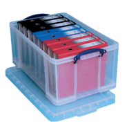 * Really Useful opbergboxen zijn stapelbaar met of zonder deksel. * Ze zijn zo sterk dat het het gewicht van één persoon houdt. * Elk product is bestendig tegen temperaturen van -15°C tot +80°C. * Minimale zijkant aanpassingen om opbergruimte te maximaliseren, dit zorgt tevens ook dat de inhoud minder kan bewegen tijdens transport. * Volledig platte en versterkte bodem. * Het sluitmechanisme houdt de doos en het deksel tezamen. * De doorzichtige doos heeft het voordeel dat u steeds de inhoud ziet. * De verschillende afmetingen zijn onderling opstapelbaar. * Geschikt om liggend ordners op te bergen. * Bergt u de ordners staand op dan past de deksel er niet meer op! 1 stuk