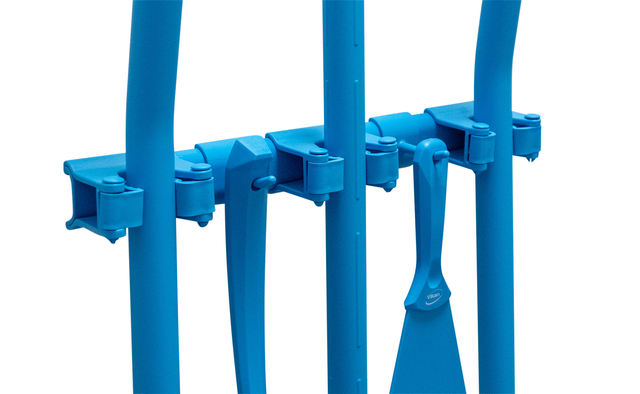 * Met het Vikan Hygiene ophangrek kun je schoonmaakgerei na gebruik gemakkelijk en hygiënisch ophangen en zo de levensduur ervan verlengen. * Het Vikan is voorzien van 3 klemmen en 2 haken, maar door meerdere ophangrekken naast elkaar te plaatsen, kun je nog meer schoonmaakmaterialen ophangen. * Het ophangsysteem is eenvoudig te reinigen en is ook geschikt voor gebruik in de voedingsindustrie.