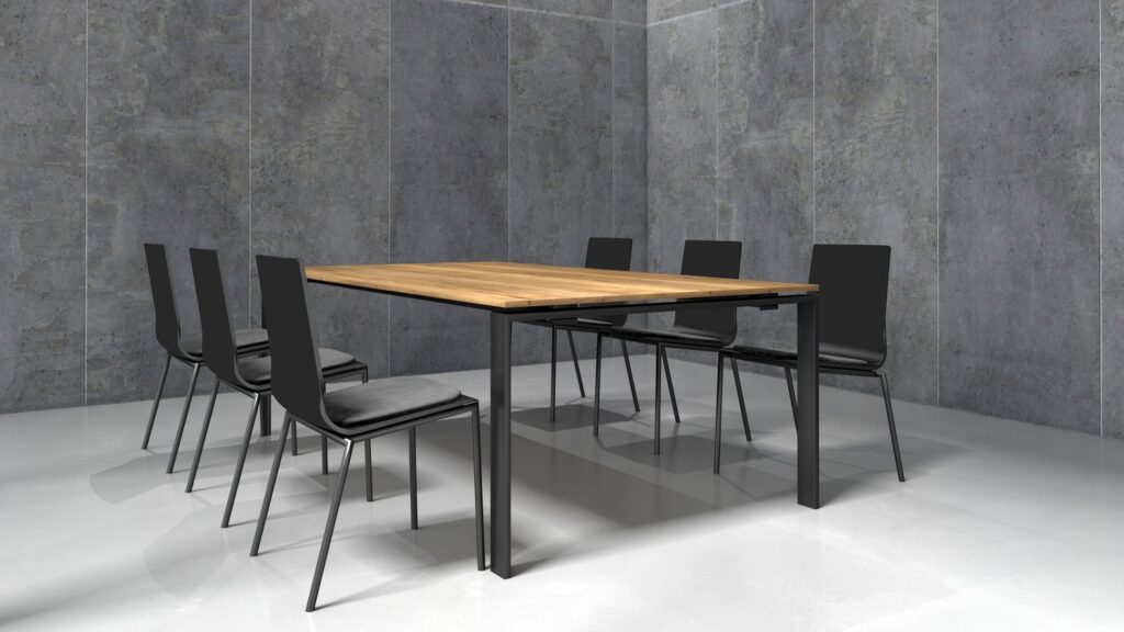 OrangeLabel Cube vergadertafel 220x110cm kleur Halifax Eiken en antraciet onderstel