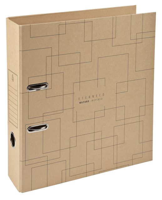 * Eterneco ordner met een rugbreedte van 70mm in A4 formaat met 2 verschillende designs. * Eterneco is een revolutionair assortiment dat gemaakt wordt met een nieuw karton met een heel natuurlijk uiterlijk en gemaakt uit plantaardige grondstoffen: houtpulp en plantaardige olie. * De ordner is gemaakt van gerecycled karton bedekt met een plantaardigeolie gecoat papier dat uitstekende bescherming biedt tegen water. * Gegarandeerd resistent, duurzaam maar ook gemakkelijk te recyclen door de mechaniek te verwijderen. * De ordner is uitgerust met een Prem'Touch mechaniek, zeer robuust en ergonomisch dankzij de drukknop, 10 jaar garantie. * Om de strakke lijn te houden zijn er lijnen op de rand van de map gedrukt om de inhoud te markeren en te identificeren zoals op een etiket. * FSC gecertificeerd. * Per stuk worden deze in willekeur uitgeleverd.