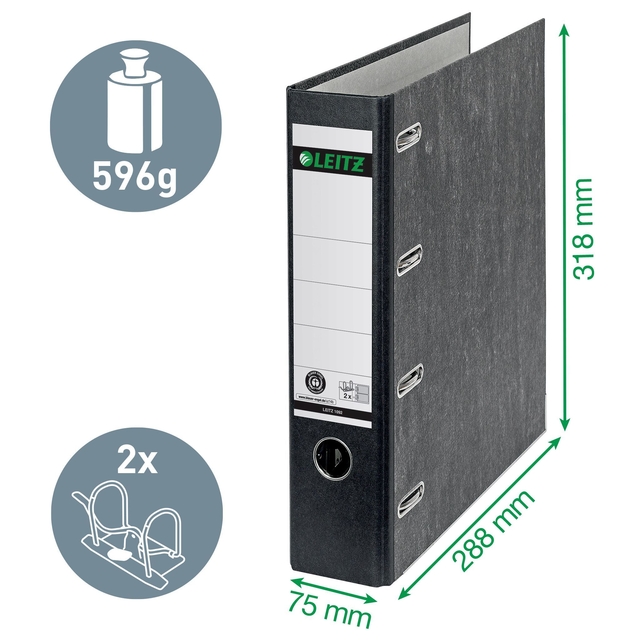 * Hoge kwaliteit ordner voor de professionele kantoormedewerkers. Duurzame materialen en een kwaliteitsmechaniek zorgen voor uitstekende prestaties en efficiëntie. * 2 mechanieken voor het opbergen van 2x A5 dwars. * Zeer stevige omslag gemaakt van 30% pre-consumer gerecycled PP-folie en PE-gelamineerd papier aan de binnenkant op stevig 90% post-consumer gerecycled karton voor langere duurzaamheid. * Met duimgat, hefboommechaniek en metalen kaftranden. * Labelhouders op de rug maakt het wisselen van labels mogelijk. *Capaciteit 2x 500 A5 vel (80grams). 1 stuk