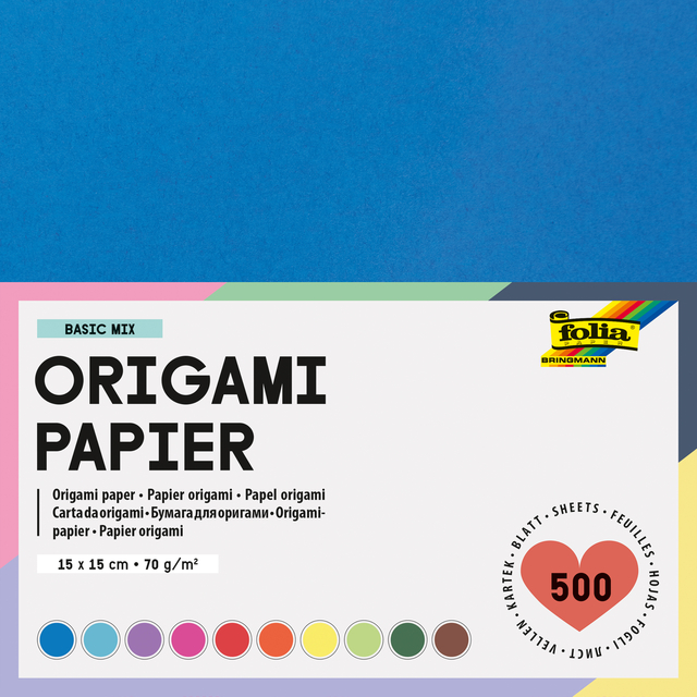 Origami Pap Folia 70gr 15x15cm 500 Vel Assorti Kl