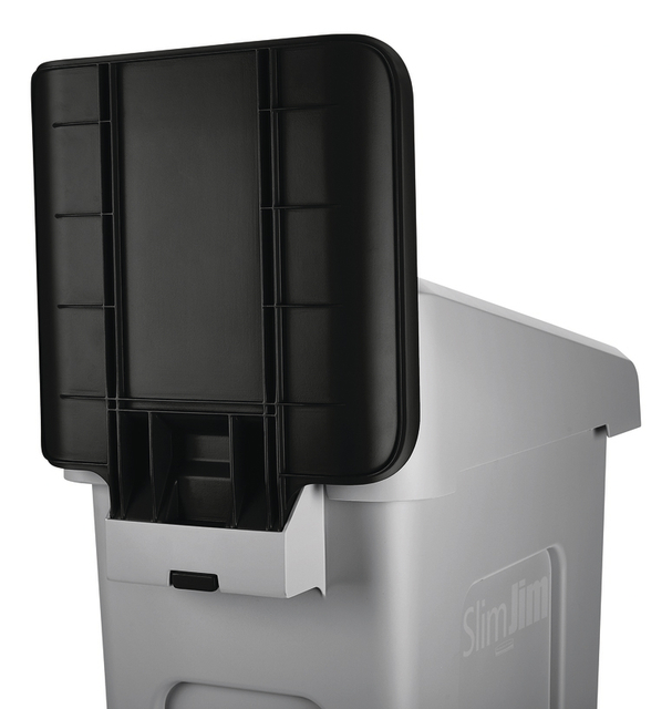 * Maak je eigen recyclestation met de Rubbermaid Slim Jim! * Afvalbakken en bovenstukken zijn in verschillende kleuren verkrijgbaar. Klik ze eenvoudig aan elkaar en maak een recyclestation op maat. * Moedig afvalscheiding aan met labels en verschillende bovenstukken: blauw bovenstuk met sleuf voor papier, een groen of bruin bovenstuk met ronde gaten voor flesjes of blikjes. * Vier geïntegreerde ventilatiegaten creëren een luchtstroom in de afvalbak. Een volle afvalzak kan daardoor makkelijk worden verwisseld. * Ontworpen voor de krapste ruimtes past de Rubbermaid Slim Jim overal, zoals bijvoorbeeld in kantooromgevingen of in de horeca.
