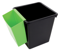 * Kunststof papierbak met vierkant model. * Verkrijgbaar in de maten 21L en 27L in de kleuren zwart en grijs. * Uit te breiden met inzetbakken in 4 verschillende kleuren. 1 stuk