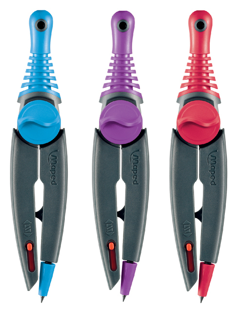* Kunststof passer in actuele kleuren. * Voorzien van het Maped Stop Systeem. * Ergonomische kop. * Automatisch intrekbare passerpunt. * Passer, inzetstuk en vulling in onbreekbaar kunststof doosje. 10 stuk