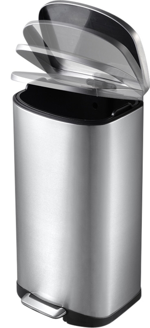 * De zilverkleurige Della pedaalemmer van EKO is een prachtig ontworpen afvalbak met een kunststof binnenbak met een inhoud van 50 liter. De pedaalemmer is een ideale afvalcontainer voor elke moderne keuken met een praktische handgreep aan de achterzijde. Daarnaast is de pedaalemmer gemaakt van geborsteld roestvrij staal en heeft hij ook een ingenieuze vingerafdrukbestendige coating. * De pedaalemmer is uitgerust met een geruisloos sluitend deksel en een openhoudfunctie. Deze functie vergrendelt het deksel voor het eenvoudig verwisselen van de afvalzak en/of het verwijderen van de binnenbak. * Afmetingen: 37,6 x 41,6 x 69,2 cm (B x D x H)