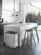 * Rechthoekige pedaalemmer van geborsteld RVS met fingerprint proof coating en voorzien van gedempt sluitende kunststof deksels. * De twee pedalen geven afzonderlijk toegang tot de kunststof binnenemmers (2x30 liter) voor het scheiden van de afval. * De pedalen worden los meegeleverd en zijn simpel zelf te monteren door het pedaal in de sleuven te klikken. * De stay-open functie vergrendelt het deksel, voor het makkelijk schoonmaken van de afvalbak of wisselen van de afvalzak.