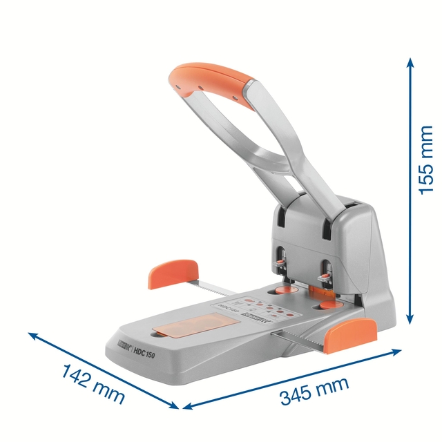 Producteigenschappen; * Perforeert tot 150 vel papier (80 g/m²). * Krachtbesparend en vlijmscherp perforeren. * Vervangbare perforatie plaatjes (los verkrijgbaar). * Vervangbare perforatiestansen (los verkrijgbaar). * Gecentreerde papieraanleg. * Eenvoudig te legen confettiopvang. 1 stuk