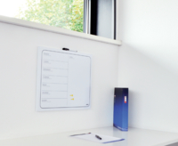 * Stijlvol, frameless weekplanbord 40x50 cm met mdf achterzijde. * Met extra groot notitievlak. * Magneethoudend, beschrijfbaar en afwisbaar. * Wordt geleverd met marker + wisserdop, 2 gele magneetpijlen en montageset. * Stevige MDF achterzijde. * Dikte: 1,7 cm. 1 stuk