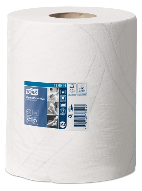 * Het multifunctionele Tork Wiping Plus Poetspapier bestaat uit 2 lagen en is ideaal om vloeistoffen mee op te nemen of de handen af te vegen. Het papier is geschikt voor de Tork® Centerfeed Dispenser, een veelzijdige oplossing met hoge capaciteit voor professionele omgevingen waar zowel handen moeten worden afgeveegd als oppervlakken moeten worden afgenomen. * Dit poetspapier scheurt niet tijdens het gebruik dankzij de twee sterke, absorberende lagen. * Veeg snel gemorste vloeistoffen op en droog de handen met dit multifunctionele ontwerp. * Pak zoveel poetspapier als u nodig heeft dankzij de onbeperkte uitgifte. * Geen vertraging meer in drukke situaties dankzij een dispenser die eenvoudig met één hand te bedienen is. * 6 rollen, à 368 vellen. 2-laags. Advanced-kwaliteit. Afmetingen rol: rolbreedte 23.5cm, diameter 19cm, hulsdiameter 7.1cm en een rollengte van 125m. Vellengte: 35cm. Te gebruiken met M2 dispensers. * Voorzien van FSC en Europees Ecolabel.