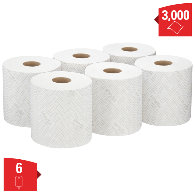 * WypAll L10-poetsdoeken voor detailhandel en dienstenomgevingen 7406 - 6 poetsdoekrollen x 500 witte papieren poetsdoeken (3000 in totaal) * Ongeacht met welke oppervlakken uw werknemers en bezoekers de hele dag in aanraking komen, u geeft ze meer gemoedsrust door beproefde reinigings- en desinfectieoplossingen voor de hygiëne van de werkplek te bieden die de overdrachtketen van ziektekiemen helpen verbreken. * WypAll L10-poetsdoeken voor detailhandel en dienstenomgevingen zijn zodanig ontworpen dat u elke poetstaak aankunt. Deze geperforeerde centrefeedrollen van één vel met merkreliëf zijn middelgroot en hebben een hoge capaciteit. * De compacte poetsdoeken met meer vellen per rol hoeven minder vaak bijgevuld te worden en zorgen voor minder vrachtwagens op de weg, waardoor u hogere duurzaamheidsnormen kunt behalen door uw CO2-uitstoot en afval te verminderen. * Onze unieke Airflex-technologie zorgt voor uitzonderlijke stevigheid en absorptievermogen in elke papieren poetsdoek. De veelzijdige, witte, 1-laags papieren poetsdoekrollen kunnen binnen of buiten een dispenser worden gebruikt om aan uw behoeften te voldoen. * WypAll L10-poetsdoeken voor detailhandel en dienstenomgevingen zijn compatibel met onze draagbare WypAll ReachPlus-dispenser (6521) en onze wandgemonteerde Aquarius Roll Control-dispensers in wit (7018) en grijs (7181), met gebruik van de bestaande rode plaat. Deze eenvoudig te reinigen poetsdoekdispensers met snellaadfunctie bieden betrouwbaardere oplossingen voor het afgeven van losse vellen. Gecontroleerde afgifte van één vel vermindert het aantal gebruikte poetsdoeken en zorgt ervoor dat de gebruiker alleen het vel aanraakt dat nodig is, voor maximale hygiëne en betere kostenbeheersing. Deze papieren WypAll-poetsdoeken kunnen eenmalig worden gebruikt met reinigingsmiddel of desinfectiemiddel. * Deze Kimberly-Clark-poetsdoeken zijn getest en geschikt bevonden voor gebruik met sprays die perazijnzuur, waterstofperoxide en 'quats' (quaternaire ammoniumverbindingen) bevatten. Dankzij de geschiktheid voor bevochtiging met een spray en schoonvegen, kunnen werknemers hun eigen werkplek, voertuig, bureau, stoel en voedselbereidingsruimte voor en na gebruik schoonvegen. Sproeien en afvegen helpt productiemedewerkers ook om hun eigen werkstation schoon te maken/te ontsmetten voordat ze deze aan de volgende werkploeg overdragen. Voor omgevingen waar schoonvegen met een volledig doordrenkte poetsdoek een vereiste is, zijn deze WypAll-schoonmaakrollen getest en geschikt bevonden voor sop/schoonmaakmiddel. Volg altijd de instructies van de fabrikant voor verdunning, toepassing en contacttijd op. * Deze WypAll L10-centrefeed rollen zijn ontworpen voor de detailhandel en dienstenomgevingen. * Elk afzonderlijke poetsdoek heeft een afmeting van 38 cm (L) x 18,3 cm (B).