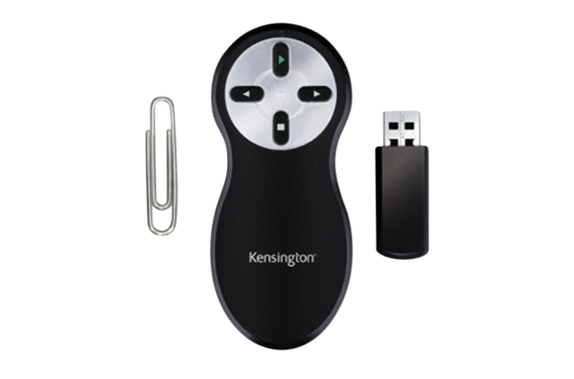 Deze presenter is ontworpen voor professionals en stelt u in staat zich te concentreren op het maken van een effectieve presentatie, gebruikmakend van een betrouwbare draadloze verbinding en een natuurlijke bediening. Met de intuïtieve lay-out met vier knoppen kunt u eenvoudig vooruit en achteruit navigeren binnen uw PowerPoint- of Keynote-slides, terwijl u met de andere twee knoppen uw scherm kunt verbergen en een diavoorstelling kunt afspelen*. Als u de draadloze nano-ontvanger niet gebruikt, kunt u deze eenvoudig in het batterijvakje plaatsen.
