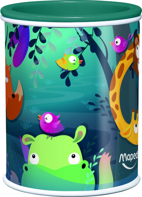 * Een resistente, duurzame en efficiënte puntenslijper met 2 gaten! * Deze Maped puntenslijper heeft 2 gaatjes. Ideaal voor alle kinderpotloden en voor al hun kleuractiviteiten. * Kinderen zullen het geweldig vinden om deze puntenslijper te gebruiken om hun Jungle fever kleurpotlood te slijpen! Meisjes en jongens zullen verleid worden door het schattige ontwerp! * Gemaakt met 2 gaten, past het zich aan alle diameters aan: jumbopotloden, standaard potloden en zelfs WAX-potloden! * Dankzij de grote, ultrabestendige metalen bus geen slijpsel meer in de etui of op het bureau! * Het is geschikt voor kleine handen en belooft een gemakkelijke grip en snel slijpen, perfect voor peuters!