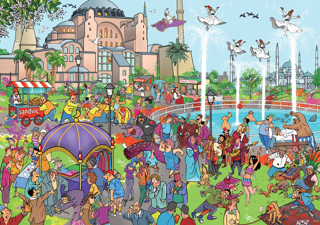 De tekening van de That's Life City Edition Istanbul puzzel is met liefde gemaakt en toont een scala aan verschillende scènes die je kunt tegenkomen in de straten van Istanbul. Elk stukje van de puzzel onthult een nieuw facet van deze levendige stad.