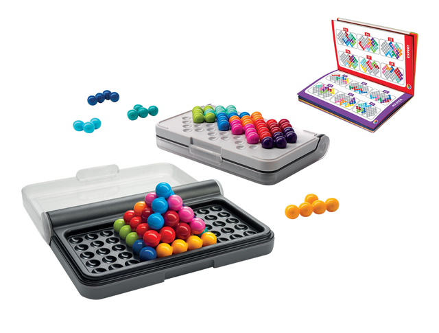 Smart Games IQ Six Pro is vergelijkbaar met IQ-Puzzler Pro, behalve dat het grid op basis van zeshoeken in plaats van vierkanten opgebouwd is. Vandaar de naam IQ-Six Pro. Er zijn zowel 2D- en 3D-opdrachten! Vul de bovenkant met de zeshoekige puzzelstukken, bouw er driehoekige piramides of zie kleurrijke vlinders verschijnen bij de opdrachten aan de onderkant van het spelbord. En dit alles in het vertrouwde, draagbare formaat. Bevat in totaal 120 opdrachten in verschillende moeilijkheidsgraden. Door de ongewone zeshoekige vorm van de puzzelstukken is deze breinbreker nog uitdagender dan IQ-Puzzler Pro.