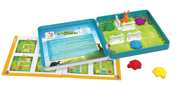 In Turtle Tactics is het de bedoeling om je schildpad naar de finishlijn te begeleiden, terwijl je obstakels en andere schildpadden in je strategie moet meenemen. Het spel daagt je uit om logisch na te denken en slimme zetten te maken, waardoor je niet alleen je probleemoplossend vermogen verbetert, maar ook je strategische denkwijze. Met SmartGames Turtle Tactics haal je een boeiend en leerzaam spel in huis dat urenlang vermaak biedt. Duik in de tactiek, puzzel je een weg naar de overwinning en geniet van het plezier van strategisch denken!