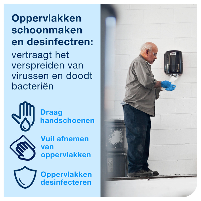 * De Tork heavy-duty combi rol reinigingsdoek W1/2/3 blauw is absorberend, dik en duurzaam, hierdoor is hard schrobben geen probleem. *De Tork reinigingdoek is geschikt voor de meeste schoonmaakproducten die olie, vet en andere vlekken kan verwijderen. * Door zijn sterke ontwerp is deze geschikt om je handen te beschermen tegen hitte en metaalsplinters. * Voor deze Tork heavy-duty combi rol gebruik je de vloerstandaard of vloerdispenser van Tork, of je kiest voor de Tork Boxed Combi rol-of maxi centerfeed dispenser. * Afmeting 333 x 264 x 264mm.