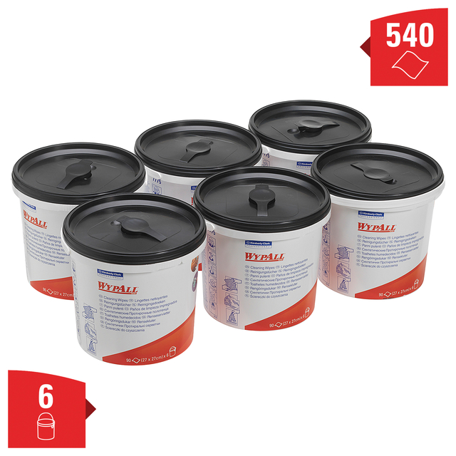 * WypAll schoonmaak doekjes 7775 - 6 emmers x 90 geïmpregneerde doeken, groen * WypAll poetsdoeken zijn het perfecte product voor allerlei taken die om een draagbare poetsoplossing vragen. * Geïmpregneerd voor maximaal gemak, zodat u geen zeep, gel of water hoeft toe te voegen. * Afzonderlijke en hygiënische uitgifte via een centerfeed houder om afval te verminderen. * Individuele velgrootte: 27cm (L) x 27cm (B). 6 emmers x 90 geïmpregneerde groene doeken (540 in totaal) * Perfect voor het reinigen van gereedschap en machines * De doekjes hebben een ruwe kant voor schrobben en een zachte kant voor reiniging en afwerking. * De poetsdoeken zijn verpakt in een centerfeed emmer en worden per stuk uitgegeven om afval te verminderen en hygiëne te bevorderen