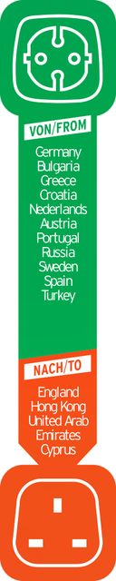 * 1-delige veiligheidsstekker voor het aansluiten van elektrische apparaten met Duits geaarde stekkersysteem voor stopcontacten in Engeland. * Geschikt voor stopcontacten in de landen: Engeland, Hong Kong, Verenigde Arabische Emirate, Cyprië. * Met hogere contactbescherming: kunststof plaatjes sluiten de contacten van het stopcontact af. * De adapter is ideaal voor het opladen van uw apparaten op reis of op vakantie * Inhoud: 1 x reisadapter voor het stopcontact in de kleur zwart – in de beste kwaliteit van Brennenstuhl® * Met 13 A zekering. * De stekkeradapter is geen spannings- en frequentieomzetter. 1 stuk
