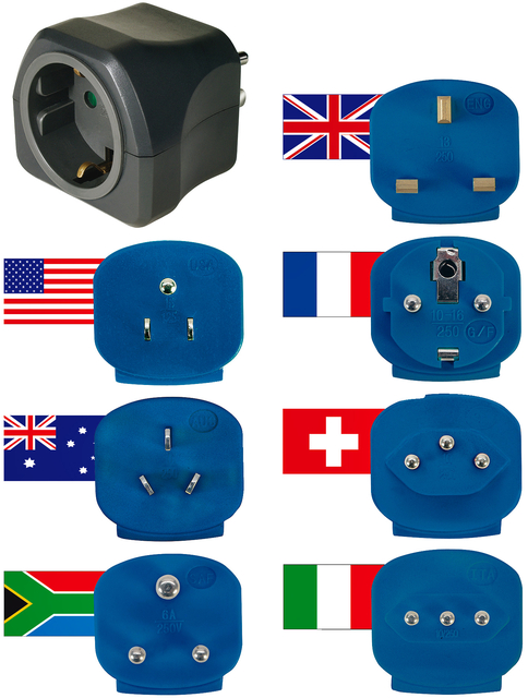 * 1-delige set veiligheidsstekkers met 7 stekkers voor meer dan 150 landen wereldwijd. * Universele reisstekker voor de landen: O.a. Engeland, VS, Italië, Frankrijk, Australië, Zwitserland en Afrika. * Met geïntegreerde hogere contactbescharming: kunststof plaatjes sluiten de contacten van het stopcontact af, GS-gecertificeerd * Netadapter voor het aansluiten van elektrische apparaten met Duits stopsysteem aan stopcontacten in het buitenland met ander insteeksysteem. * Inhoud: 1 x reisadapter voor het stopcontact in de kleur zwart/blauw met 7 stekkerinzetstukken – in de beste kwaliteit van Brennenstuhl® * 1 stuk