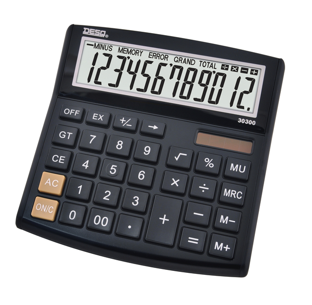 * Business Classy bureaurekenmachine met metalen front in een stijlvol design en 12-cijferig display. * Voegt een vleugje klasse toe aan elk zakelijk bureau. * Met grote soepele toetsen voor aangenaam typen, zelfs bij langdurig gebruik. * Werkt op zonne-energie en batterij. * Energiebesprende auto-off modus. * Rubberen voeten. * Groot en schuin gepositioneerd duidelijk leesbaar LCD scherm. * Metalen matzwarte front. * LCD scherm voorzien van acryl glas. * "Smooth-Touch" toetsen. * Function Command Signs: huidige functieteken is weergegeven boven de cijfers. * 3-toetsen geheugen. * Zakelijke functies: MU - Backspace - 00. * Afmetingen 134x135x26mm.