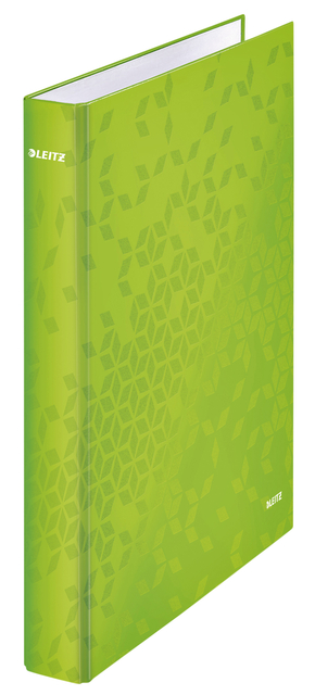 * Onze Leitz WOW ringband heeft een opvallend geometrisch patroon en is de perfecte keuze voor iedereen die op zoek is naar een stijlvolle en functionele oplossing voor het organiseren van documenten. * Deze ringband is gemaakt van robuust en stevig grijs karton, overtrokken met bedrukt papier en afgewerkt met een transparante folie. * Door de groene glanzende omslag is deze map een kleurrijke toevoeging aan je kantoor- of studieruimte. * Perfect voor studenten, professionals en iedereen die houdt van een trendy en decoratieve opbergmap. * Door het A4 maxi formaat is deze map ideaal te combineren met tabbladen en showtassen. * De capaciteit bedraagt 250 A4 vel (80 g/m²). * FSC® gecertificeerd.