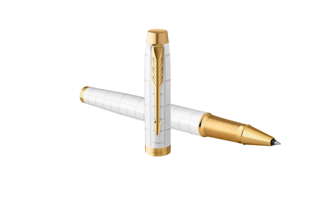 * De Parker IM Premium-rollerpen is stijlvol, gepolijst en professioneel en een ideale partner met onbegrensde mogelijkheden. * Het opvallende slanke model vult de iconische maar moderne ontwerpen naadloos aan. Deze Parker-pen is een gedenkwaardig geschenk, vervaardigd met een elegante pearl gelakte behuizing geëtst in een asymmetrisch vierkant motief, geaccentueerd met een gouden afwerking. * Van het ontwerp tot de bijzonder soepele rollerballpunt, die voor vloeiend schrijven zonder haperingen zorgt, is ieder detail verfijnd om een schrijfervaring te bieden die direct betrouwbaar en trouw is aan het Parker-merkerfgoed van meer dan 130 jaar. * Te gebruiken met Quink-rollerballnavullingen voor de kenmerkende schrijfstijl, overal waar u schrijft.
