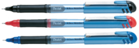 * Ideale samensmelting van gel en vloeibare inkt. * Droogt snel. * Rubber grip en dop met metalen clip. * Fraaie kunststof houder in metallic blauwe kleur. * Schrijfbreedte 0.25mm - kogelbreedte 0.5mm. * Dit product bestaat voor 52% uit gerecycled materiaal, uitgezonderd de inkt. 12 stuks