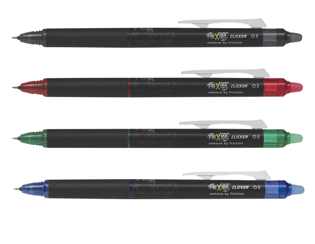 * Schrijf, wis en herbegin! * Nooit meer doorstrepen met Pilot’s FriXion Point Clicker, een stijlvolle rollerball pen met ongelofelijke eigenschappen! * De innovatieve Synergy Point biedt een fijn en vlot schrijven dankzij de hybride penpunt die de voordelen van een conische- en een naalpunt combineert. * Precies, uitwisbaar en navulbaar, deze Clicker versie van de FriXion Point heeft alle troeven om jouw volgende favoriet te worden. * Nu met een verbeterde punt die veel beter schrijft. * Schrijfbreedte 0.25mm - kogelbreedte 0.5mm.