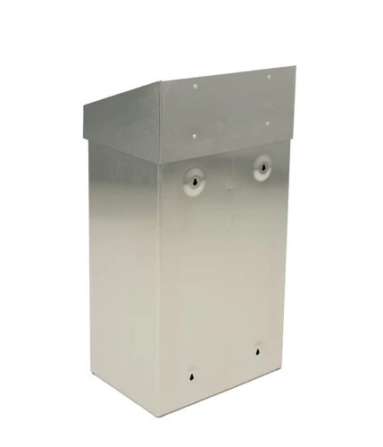 Sanitaire afvalbak van hoogwaardig gepoedercoat aluminium of RVS. Voorzien van zelfsluitend push deksel voor discreet en intensief gebruik. De antislip dopjes houden de afvalbak op zijn plaats, tevens geschikt voor wandmontage. Formaat (mm) B 380 D 250 H 680.