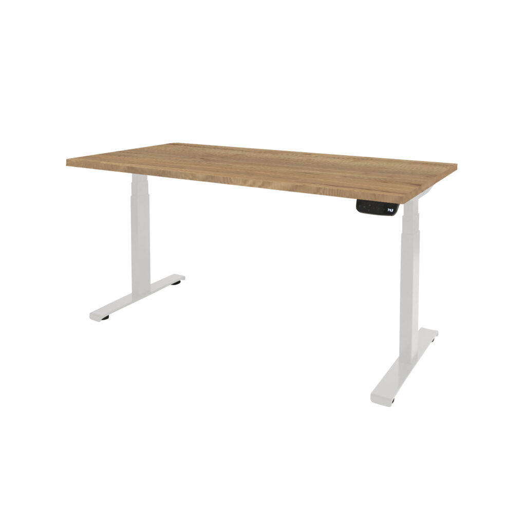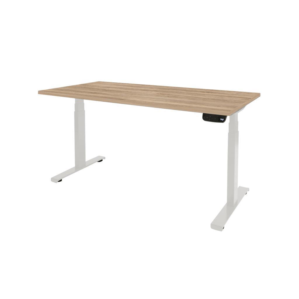 De bediening van het Dextro Plus bureau is eenvoudig via het bedieningspaneel onder het blad. De tafelbladen van 25 mm dik melamine zijn uitgevoerd in diverse kleuren en rusten op een stevig metalen onderstel met T-poten die zijn voorzien van stelvoeten.