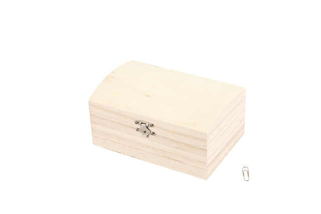 * Kist van hout met ronde deksel en metalen sluiting. * Deze leuke houten doosjes kun je versieren met verf, stickers, knopen, stempels of foamklei. * Maak je eigen schatkist, brievendoosje of sieradenkistje! Afmetingen buitenkant: 16,5x11x8,5 cm en binnenkant: 15x9,5x5cm.