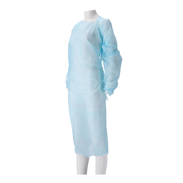 * De CMT schorten met lange mouw zijn gemaakt van CPE. * Het voornaamste doel van de CMT CPE schorten is het beschermen van de eigen kleding tegen vies of nat worden, het is minder tijdrovend en hygiënischer om een schoon disposable schort aan te trekken dan de werknemer zich volledig om te laten kleden tijdens het werk. * De CMT gevouwen CPE schorten hebben de volgende eigenschappen: - Blauw - 115 x 105 / 190 cm - 30my - Geruwd - Voldoen aan CE-norm - Voldoen aan verordening(EU) nr. 10/2011 van het Europees parlement en raad inzake plastic materialen en voorwerpen bestemd om met levensmiddelen in contact te komen.