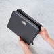 * Schrijfmap Excellent de luxe is gemaakt van lederlook materiaal. * Aan de linker binnenzijde zitten diverse insteekvakken voor visitekaartjes en documenten. * Een insteekvak is afsluitbaar met een rits. * In het midden balpenhouders. * Op de rechter binnenzijde vindt u een gelinieerd schrijfblok. * De map is afsluitbaar met een rits. * Metalen plaatje aan de buitenzijde waarop een tekst/logo middels lasergravure aangebracht kan worden. * Kleur zwart. 1 stuk
