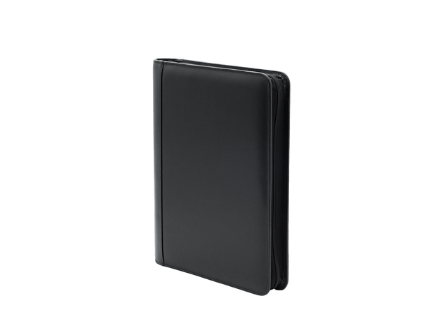 * Royale lederen A4 ritsmap met 25mm mechaniek.* Inclusief A4 schrijfblok met 50vel 80gr wit schrijfpapier. * Veel opbergruimte. * Met een groot en een klein insteekvak en breed ritsvak. * 6 visitekaartvakjes en venstervak. * 2 royale peninsteken (pen niet inbegrepen). * Schrijfblok insteek met daaronder een groot insteekvak. * Formaat 350mmx267mm. 1 stuk