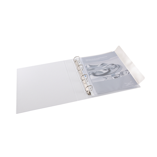 * Handige showtas met een klepsluiting voor het opbergen en presenteren van documenten. * Vervaardigd van polypropyleen. * Spiegelvrij en generfd. * Rechterzijde is open en sluit af met een klep.* Formaat A4. * Gemiddelde capaciteit van 20 vel. * 11 - gaats perforatie. *Versterkte perforatiestrip. * Pak van 10 stuks. 1 pak x 10 stuk