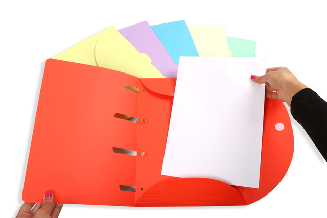 * Bespaar tijd en stress op het werk! * De Smartfolder geeft gemakkelijk toegang tot al uw documenten zonder dat u uw ringband hoeft te openen. * Belangrijke documenten hoeven niet geperforeerd te worden om vervolgens in een ringband op te bergen. * Verpakking à 6 stuks in diverse kleuren. * Geschikt voor vrijwel alle 2 & 4 rings mechanieken. * Capaciteit tot maximaal 80 bladen in A4-formaat. * 250 gm/m² karton. * Afmetingen map: 235 x 313 mm plus 10 mm tab. * Metalen ogen.