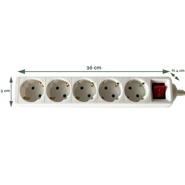 * Nooit meer een stopcontact te kort! Deze BRASQ Stekkerdoos, in witte kunststof uitvoering, met 5 stopcontacten is een echte handige must-have en een onmisbaar hulpmiddel in het moderne huishouden en op kantoren. Sluit al je elektrische apparaten aan, zoals tv's, huishoudelijke apparaten, gadgets en (spel)computers aan op deze 3-voudige stekkerdoos met schakelaar. De stekkerdoos met 3 sockets, die geschikt is voor binnenshuis gebruik, is voorzien van geaarde stopcontacten en een hoofdstekker met randaarde. De stekkerdoos is direct klaar om te gebruiken en geschikt voor geaarde en niet-geaarde apparaten. Met zijn handige aan-uit schakelaar kun je gemakkelijk de toevoer van elektriciteit regelen, waardoor je zelf ook het energieverbruik in huis of kantoor bepaald. De schakelaar is uitgerust met verlichting, zodat je ook in het donker duidelijk kunt zien of de schakelaar is ingeschakeld of niet. Door de handige schuine plaatsing van de stopcontacten kunnen er makkelijker haakse stekkers op worden aangesloten. * De stekkerdoos met schakelaar voldoet aan alle veiligheidseisen die betrekking hebben op dit product. Hij is voorzien van een ROHS, TUV GS en CE certificaat. * De contactpunten zijn voorzien van kinderbeveiliging. Door het gepatenteerde systeem is het niet mogelijk om voorwerpen in de stopcontacten te steken. * Overbelasting van een stekkerdoos kan leiden tot oververhitting en zelfs brandgevaar. Daarom is het cruciaal om te weten wat het maximale vermogen is dat de stekkerdoos aankan en deze limiet niet te overschrijden. * De zekering of overspanningsbeveiliging beschermt de aangesloten apparaten tegen piekspanningen en kortsluitingen. * Bovendien is het belangrijk om stekkerdozen regelmatig te controleren op tekenen van slijtage, beschadiging of loszittende onderdelen. * Met de BRASQ Stekkerdoos haal je dus kwaliteit en veiligheid in huis! * Afmetingen: 26 x 5 x 4 cm (lxbxh) * Capaciteit: 3 stekkers * Materiaal: Kunststof * Hoofdschakelaar: Aan/uit schakelaar * Voeding: Netstroom * Hoofdstekker: Randaarde * Stopcontact: Schuko Type F (randaarde) * Aansluiting: 3-polig * Max. belasting: 3600W Nominale stroom: 230V/16A * Draaddikte: 3 x 1,5mm * Kinderbeveiliging: Ja * Kabellengte: 1,4 M * Keurmerken: ROHS, TUV GS en CE certificaat * Garantie: 1 jaar