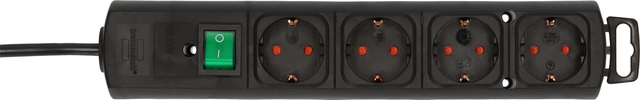 Comfort-Line Plus stekkerdoos met randaarde en met platte stekker 4-voudig zwart H05VV-F 3G1,5 * Aantrekkelijk design. * Stopcontacten in een hoek van 90°. * Uitstekend geschikt voor aansluiting van haakse stekkers. * Met innovatieve, handige, ruimtebesparende platte stekker. * De afstanden vergemakkelijken het gebruik van netapparaten. * Verlichte veiligheidsschakelaar, tweepolig in-/uitschakelbaar. * Optimaal te bevestigen via schroefgaten, voor vlotte montage van de stekkerdoos op bv. een wand. * Stopcontacten met hogere contactbescherming. * Kabellengte: 2 meter. 1 stuk