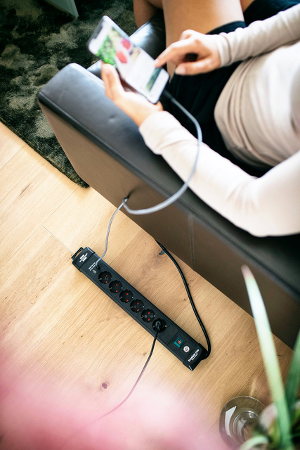 De Premium-Line 6 voudig Stekkerdoos met randaarde van Brennenstuhl in de kleur zwart, met 2 USB-laadcontactdozen en 3m kabel, overtuigt door zijn kwaliteit en veiligheid op alle vlakken. De vormvaste en stabiele behuizing bestaat uit zeer breukvast speciaal kunststof. Het heeft niet alleen een hogere contactbescherming, maar overtuigt ook met de volgende kenmerken: * Contactdozen in 45°-opstelling, ook voor haakse stekkers * Veiligheidsschakelaar verlicht, dubbelpolig aan/uit-schakelbaar * Praktische kabelhouder * Met ophanginrichting * Innovatief bevestigingsconcept * 2 USB-laadcontactdozen * Totale laadstroom max. 3100 mA voor snel laden 1 stuk