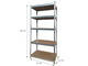 * De solide BRASQ stellingkast is de ideale opberger voor in je werkplaats, voorraadkast, magazijn, winkel, archief of garderobe. * De hoogte in werken is altijd een slim idee als het gaat om het opbergen van spullen. * Zorg ervoor dat je spullen van de vloer of grond zijn en houdt ze daardoor droog en schoon. * Met zijn afmeting van 90x40x180cm, en 5 lagen om je spullen, dozen en kratten op te plaatsen, is dit handige stabiele magazijnrek een echte maatwerkoplossing. * De stellingkast is gemaakt van gegalvaniseerd staal en met FSC gecertificeerd houten planken, van 4 mm dikte met legbord opstelling, kun je de stellingkast inzetten als voorraadkast, winkelinrichting, werkbank of kantooropslag. * Met een laadvermogen van 175 kg per etage, en een totaal draaggewicht van 875 KG, heb je een handig hulpmiddel om al je spullen en voorraad te ordenen. * De stellingkast is extra sterk door de voor gemonteerde dwarsbalk op elke laag. * De stellingkast is dankzij het klem-klik-klaar systeem zeer eenvoudig te monteren. * Gebruik voor alle veiligheid werkhandschoenen om het rek in elkaar te zetten. * Om dit nog meer te vergemakkelijken is het enige dat je nodig hebt een rubberen hamer en een platte schroevendraaier. * De poten van deze stevige stellingkast hebben stalen palen met een gekrulde rand om scherpe randjes te voorkomen en vergrote daarmee ook de stabiliteit en draagkracht. * De onderkant van de pootjes zijn afgedekt met beschermdoppen om krassen op de vloer te voorkomen. * Dit artikel is ook geschikt om te verankeren]aan de muur. * Nooit meer los slingerende artikelen over de vloer en alles netjes geordend en opgeruimd met de BRASQ Stellingkast. * Afmeting product: 90x40x180cm (lxbxh) * Gewicht product: 13,5kg. * Draagkracht: 875kg – 175kg per plank. * Materiaal frame: Gegalvaniseerd staal. * Dikte frame: 0,63mm * Materiaal legborden: MDF Dikte legborden: 5mm. * Handleiding: Inbegrepen. * Garantie: 1 jaar.