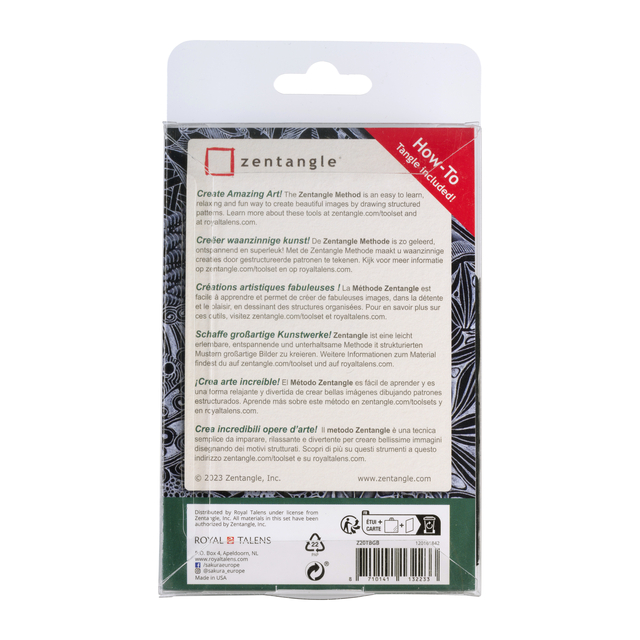 * Heb je al gehoord van de populaire nieuwe activiteit op hobbygebied? * Doe mee aan deze rage Zentangle! * Zentangle is een rustgevende tekentechniek. * Door simpele patronen te herhalen en te combineren maak je in een handomdraai je eigen bijzondere kunstwerkjes! * Het ziet er ingewikkeld uit, maar het is zo geleerd! Bekijk ook de nieuwe Zentangle tekenboeken! 1 set x 20 stuk