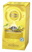 * Lipton Exclusive Selection is hét concept bij uitstek voor bedrijven en restaurants. * Het Lipton Exclusive Selection is een zorgvuldig uitgekozen range van 12 verschillende varianten om aan de verschillende voorkeuren van uw gasten te voldoen. * Het assortiment bevat lange theeblaadjes en kruiden, gecombineerd met zichtbare stukjes fruit en bloemen. * De thee zit verpakt in een semi-transparant, piramidevormig theebuiltje. * De piramidevorm verzekert meer plaats voor de ingrediënten om te bewegen tijdens de infusie met een uitstekend aroma, smaak en kleur als gevolg. * 25 piramidezakjes van 2gram. 1 pak x 25 stuk