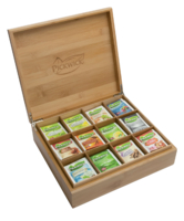 * Schenkt u thee aan uw werknemers of gasten? Een stijlvolle presentatie is een must. Met de Pickwick theekist kunt u de verschillende thee smaken makkelijk opbergen maar ook presenteren. Kiest u voor de gevulde Pickwick Fairtrade Bamboe kist, dan kunt u de theekist gemakkelijk verplaatsen en eventueel presenteren aan uw gasten. * Van elke smaak zijn er 10 zakjes en de kist bevat de volgende smaken: * English original, earl grey, forest fruit, lemon, strawberry, green tea lemon, green tea pure, kamille, sterrenmunt, rooibos original, liquorice/zoethout en miny Marocco. 1 stuk
